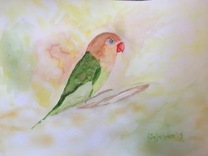 2019Agapornis (dwergpapegaai) aquarelachtig met acryl