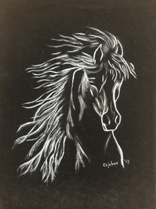2019Paard om zwarte fluweelachtige stof