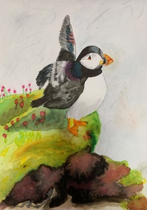 Papegaaiduiker aquarel
