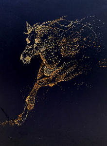 Paard pointillisme op zacht blauwig doek